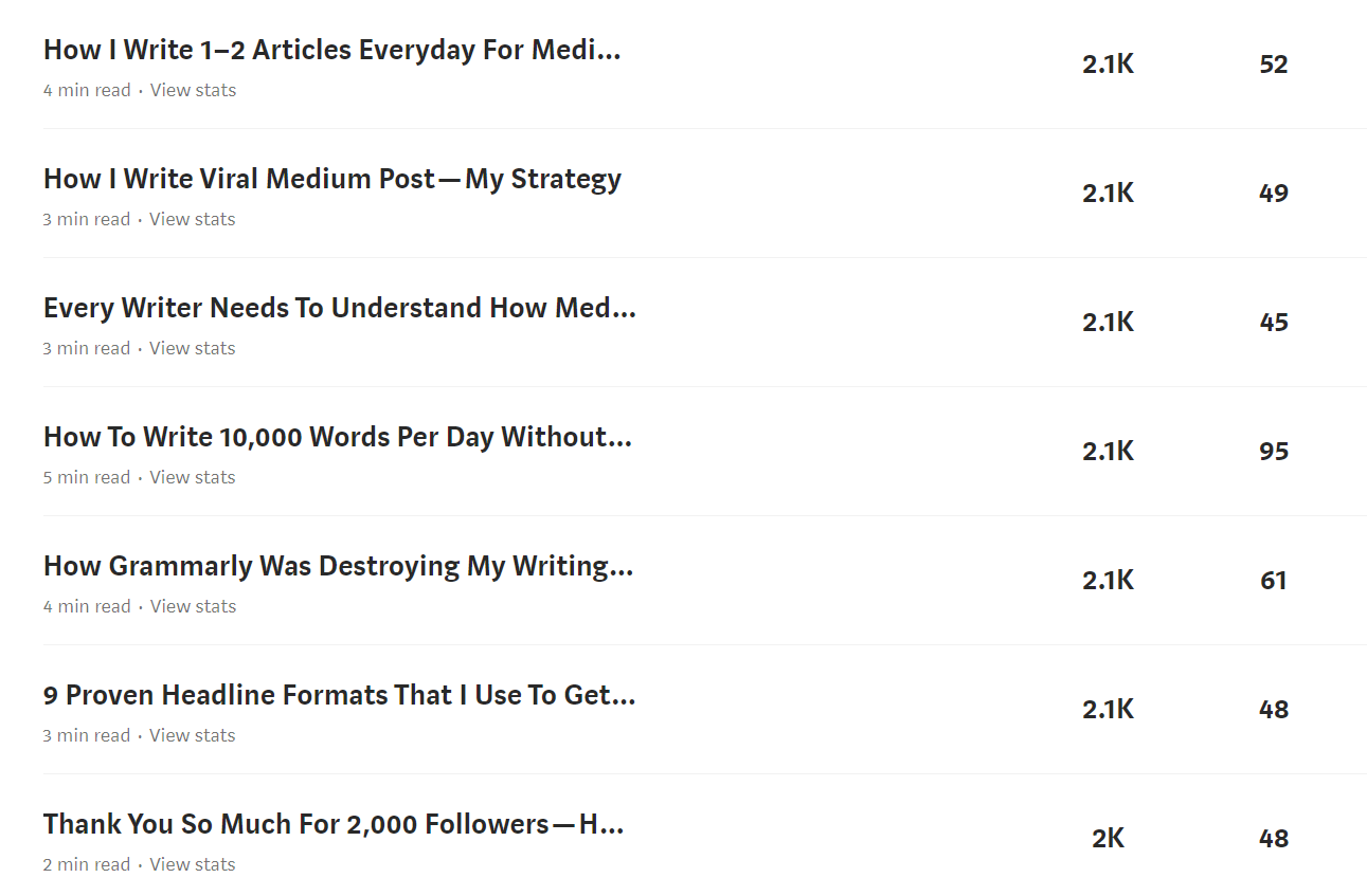I started reading and listening to Har around September. And when I was learning from him, I got 76 views in one month, which is two times what I used to do. I literally got 50 views in one week as a result of publishing a lot and applying what I learned from him. Thanks for helping me to be a better writer.