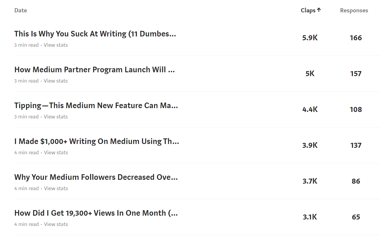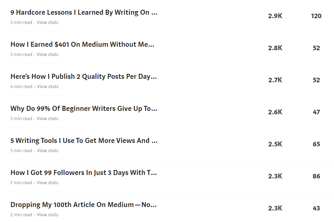 Joe never made a single dollar through his Medium work, while Sofia never achieved her first 1,000 followers milestone. Not to mention, we all started writing on Medium at the same time. And you know the worst part? Joe and Sofia are no longer writing on Medium.